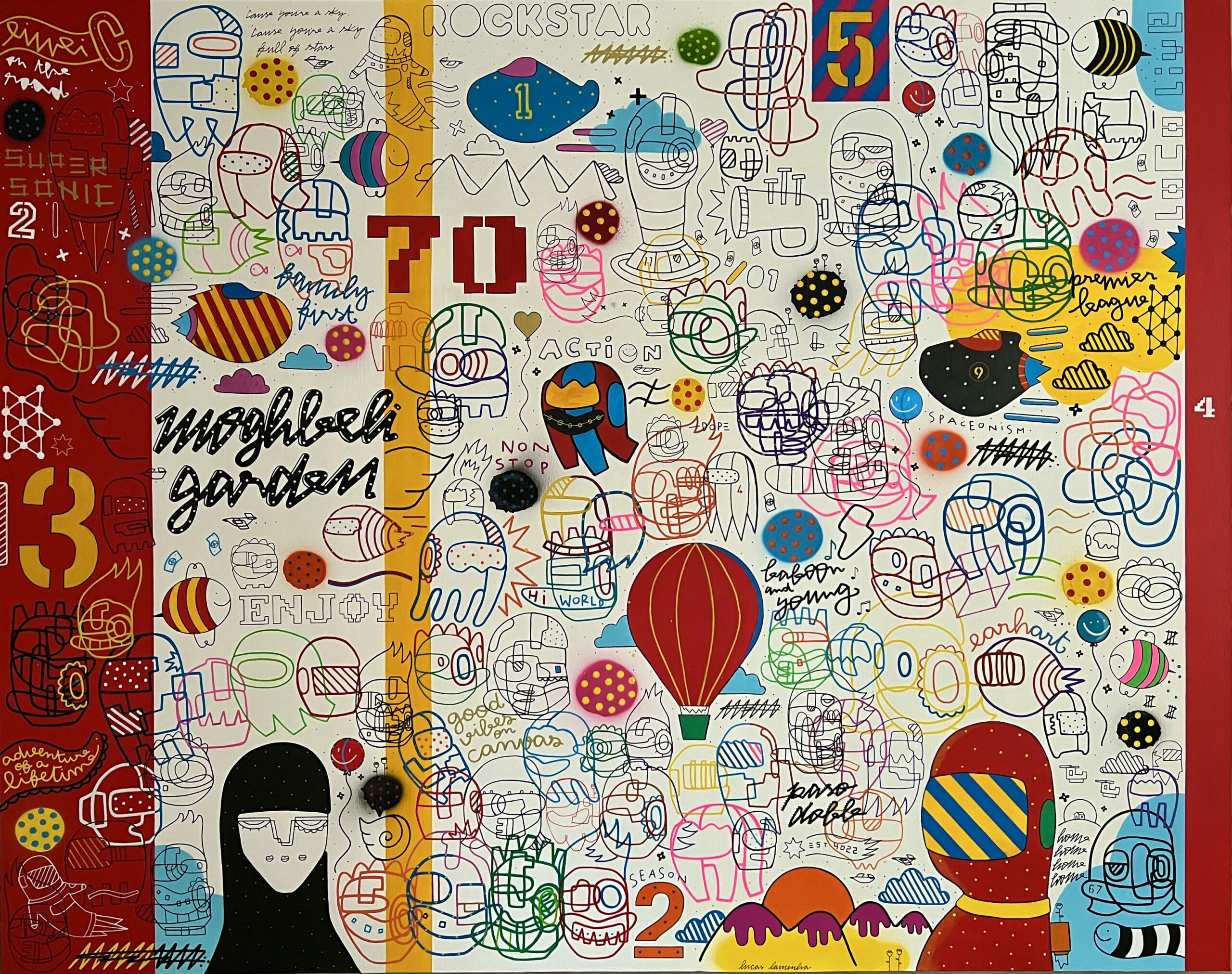 The Unforgettable Club, 2022, Spray paint.acrylic and marker on canvas, 122x91 cm
