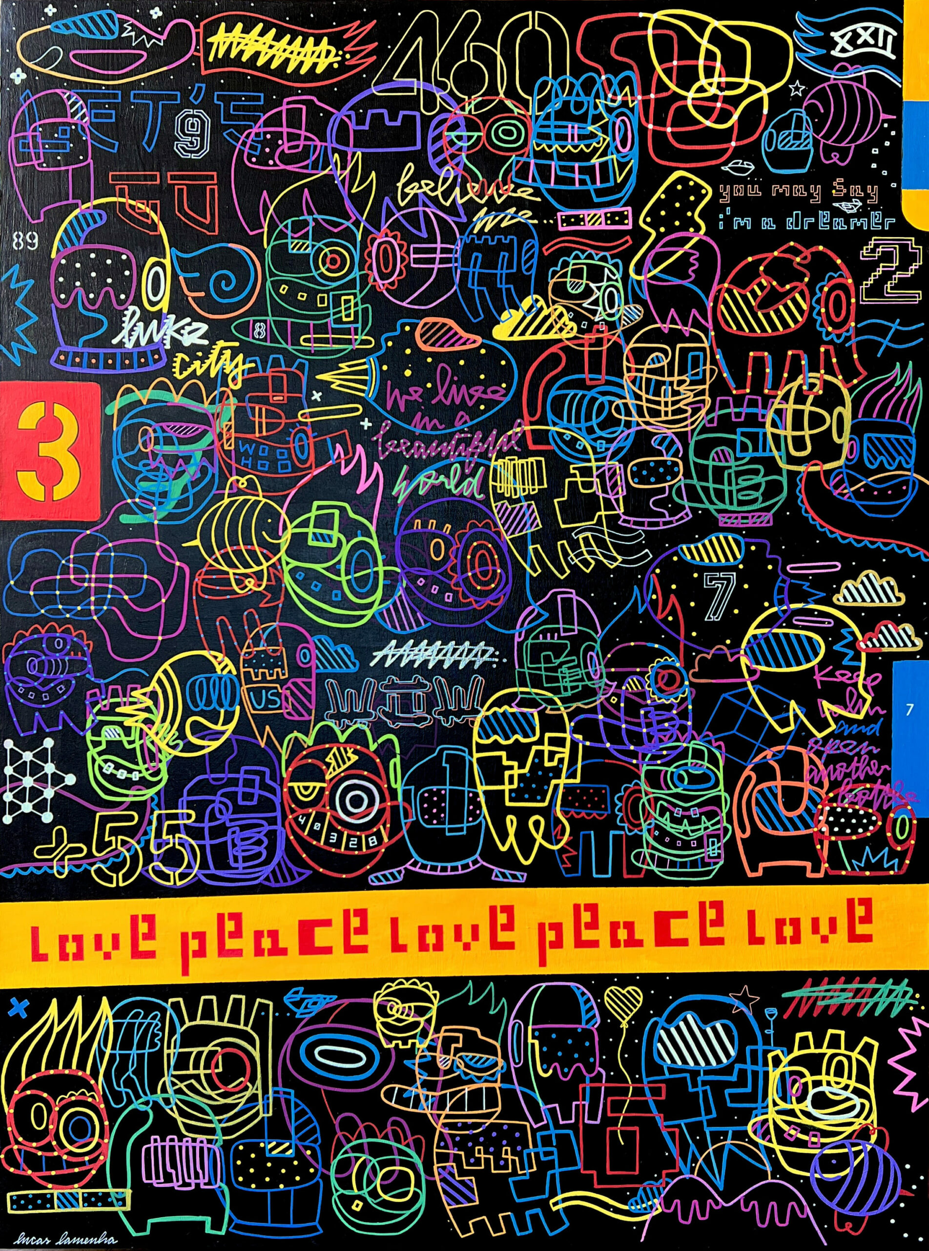 Luke City, 2022, Spray paint.acrylic and marker on canvas, 122x91 cm