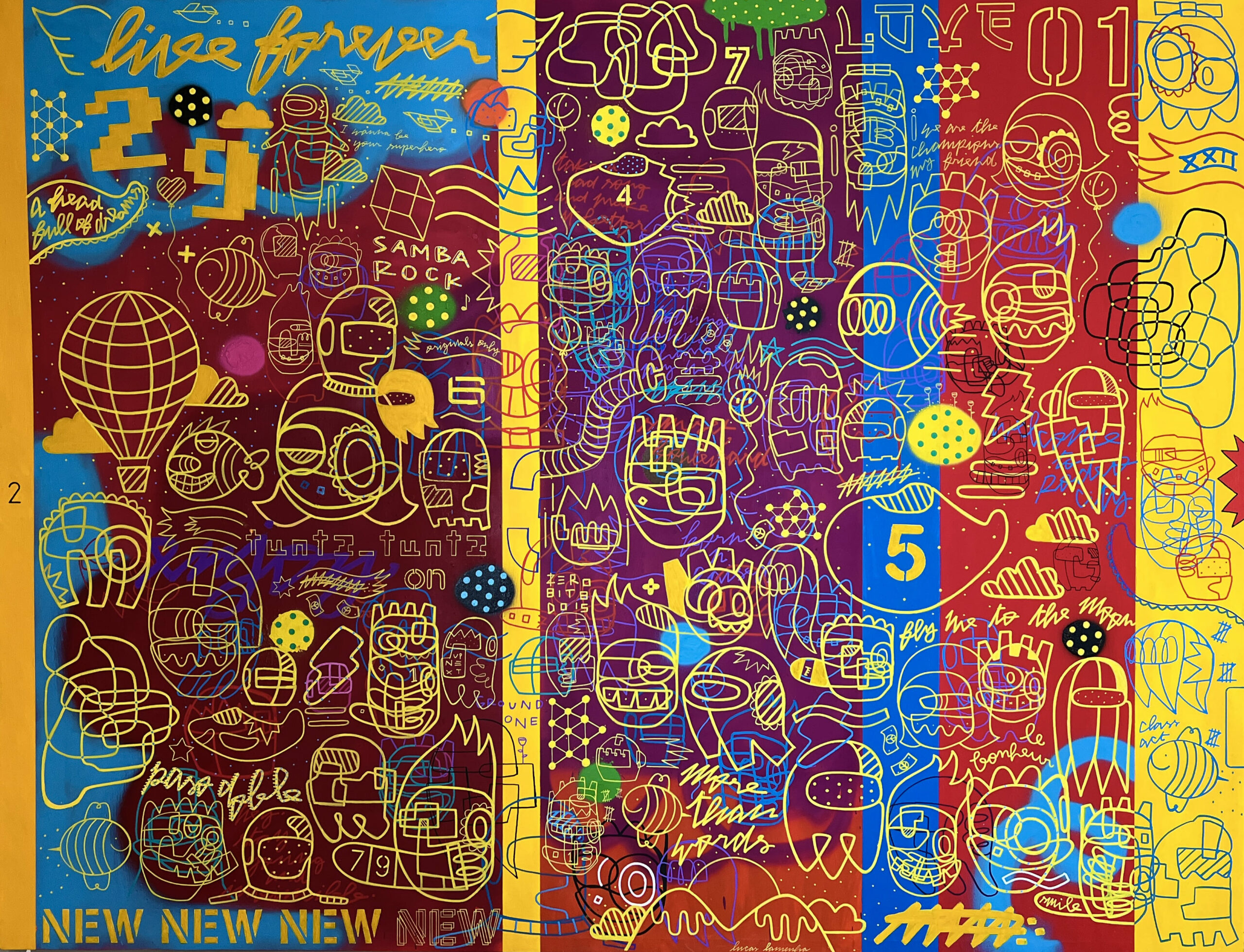 Live Forever, 2022, Spray paint.acrylic and marker on canvas, 127x160 cm